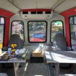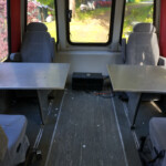 This is how the club modified the interior to be an Officials vehicle. The aluminum tables on each side were custom built and have a center leaf you drop between them that makes a big desk. I really wish I could keep this arrangement, but it is not storage efficient.. sigh.